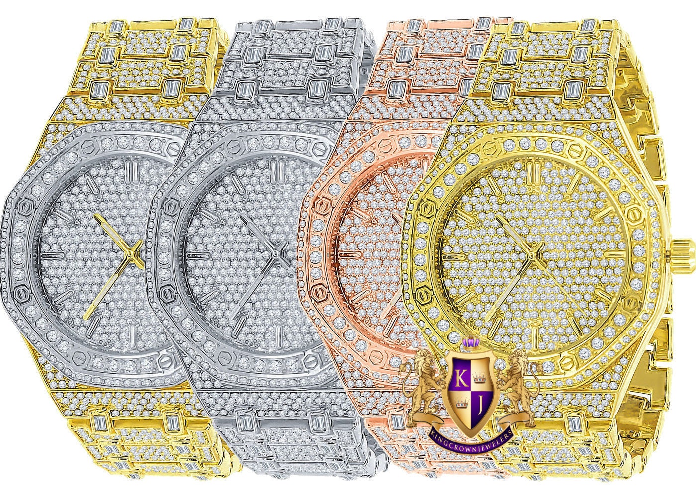 6 Row Iced Out Custom Replacement Watch Band Bracelet 14k Gold Etsy Denmark